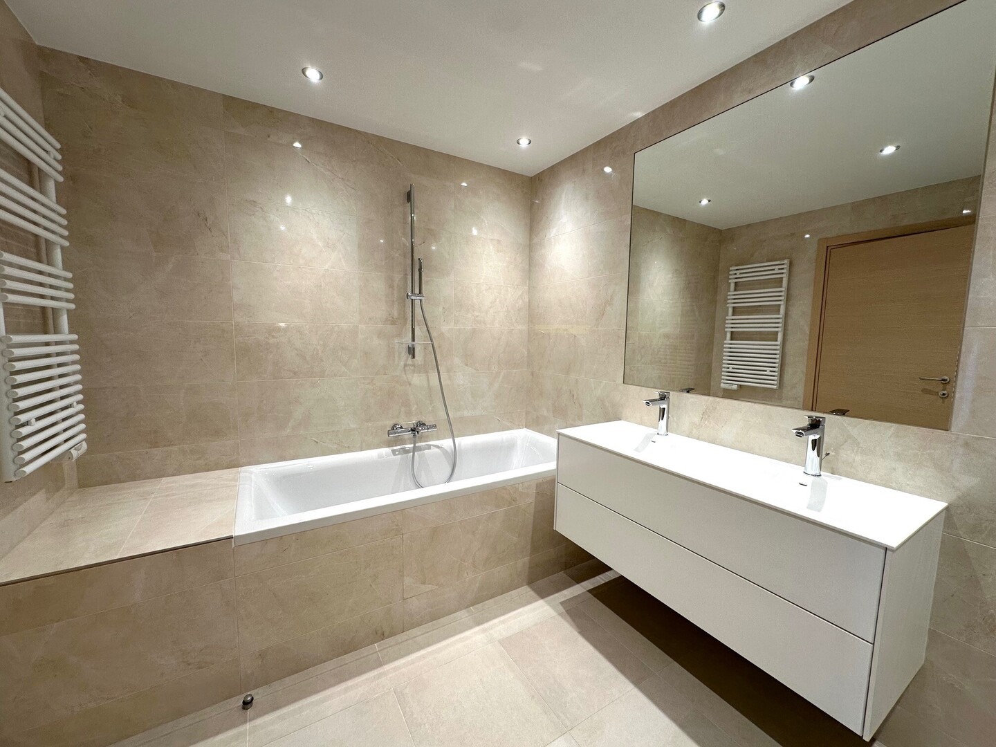L’appartement est entièrement neuf et bénéficie de prestations modernes telles que la climatisation réversible et la domotique.